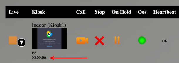 en de verbinding wordt tot stand gebracht. U ziet en hoort nu de persoon aan de kiosk en uw status gaat naar