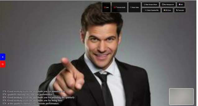 De taalkeuze gemaakt door de kiosk-gebruiker ('Remote Person') is reeds ingevuld (in dit voorbeeld 'Spaans')