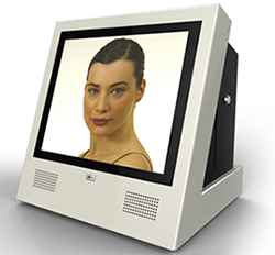 Une gamme complète de kiosques 2D est disponible. Toutes les unités sont livrées avec un écran tactile, une caméra, un microphone et des haut-parleurs intégrés. La personne éloignée apparaît avec un contact visuel oculaire aligné. Des équipements supplémentaires (imprimantes, scanners, lecteurs, détecteurs, ..) peuvent être connectés.