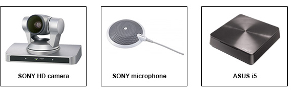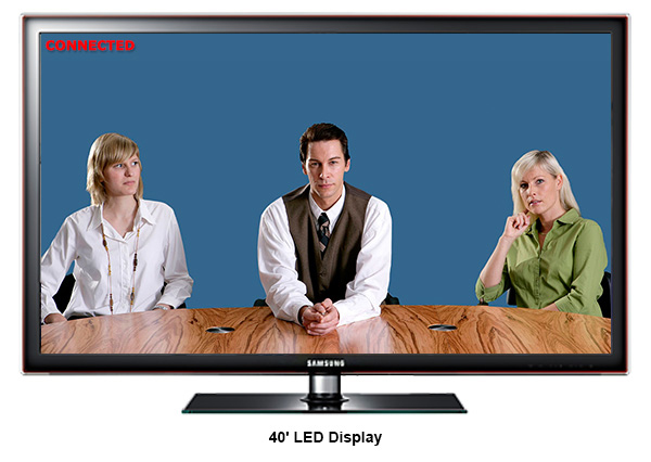 Toutes tailles entre 23 'et 85'. Ou choix de deux affichages: un pour les participants à distance et un comme écran de données (présentations) Peut être monté contre le mur ou pour être placé sur une table ou un meuble. Pour les salles de conférence de taille moyenne, nous recommandons 40 '; comme indiqué ci-dessous. Peut être fourni avec des haut-parleurs intégrés ou vous pouvez opter pour utiliser des enceintes séparées.